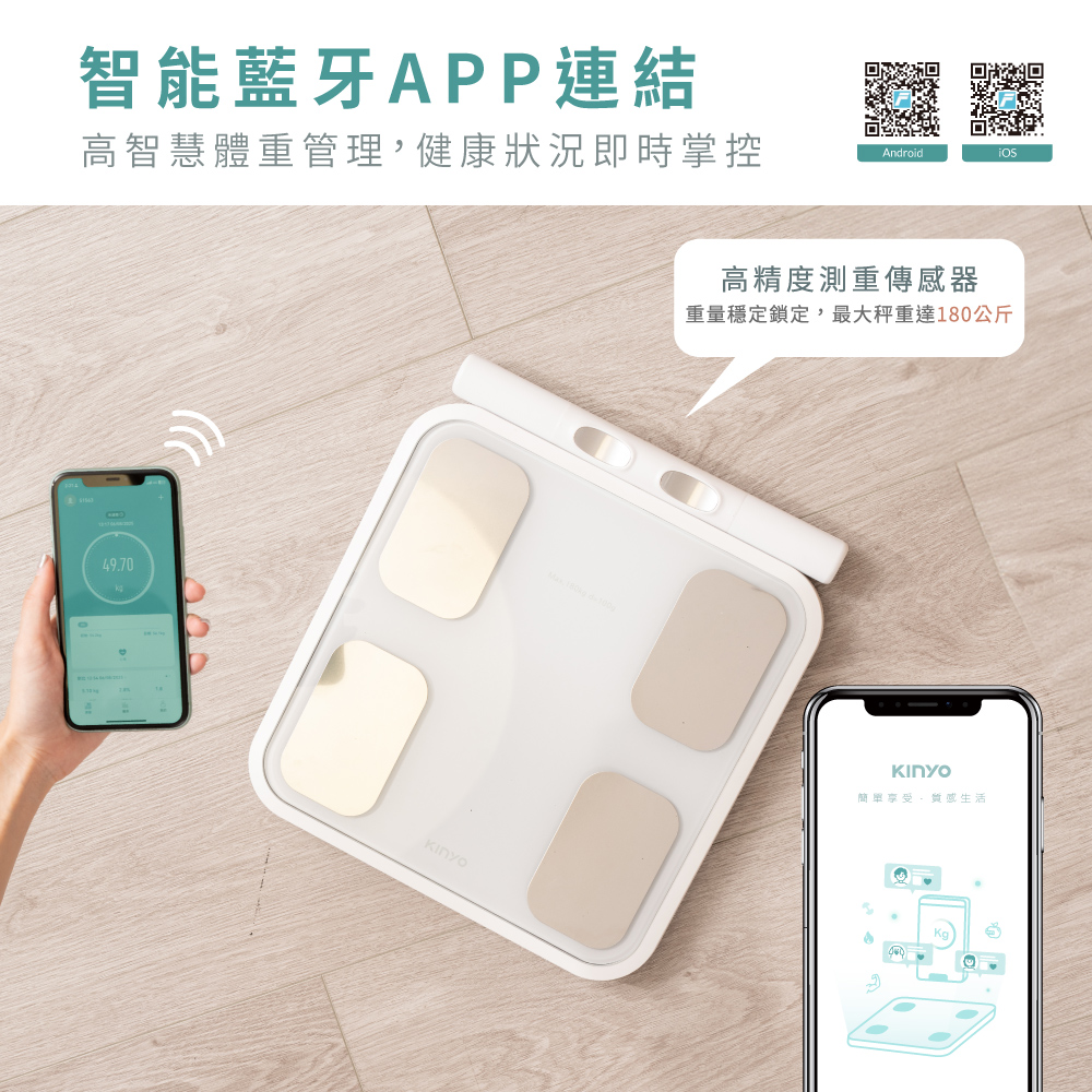 - ‧ 智能藍牙 APP 連結-高智慧體重管理,健康狀況即時掌控