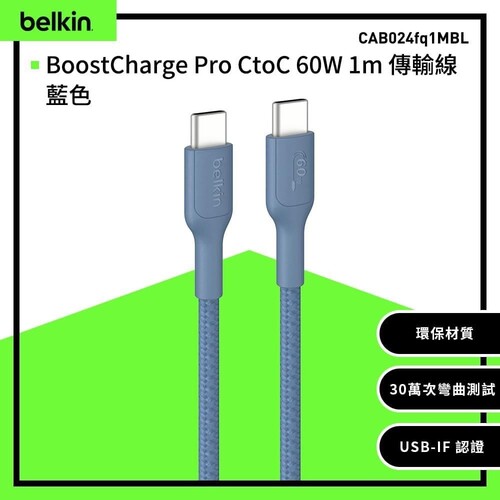 Belkin USB-C環保傳輸線(1公尺/藍色)