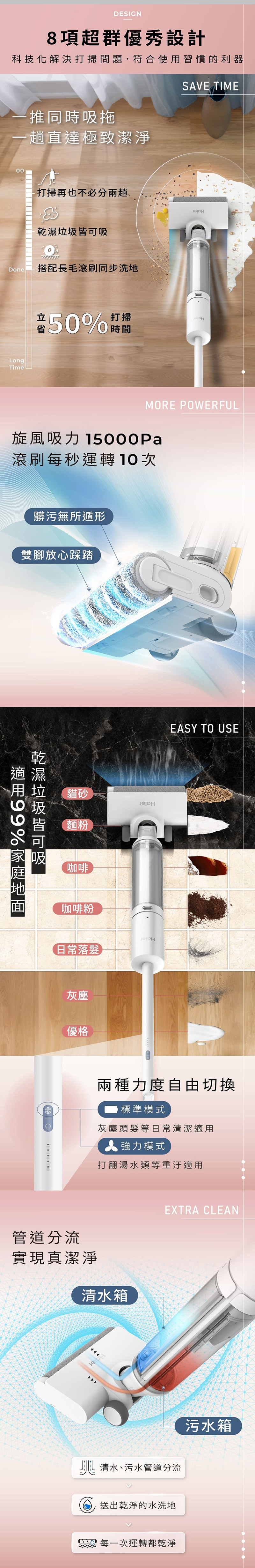 ◆吸地拖地一趟搞定,乾濕垃圾皆可吸,適用99%家庭地面。