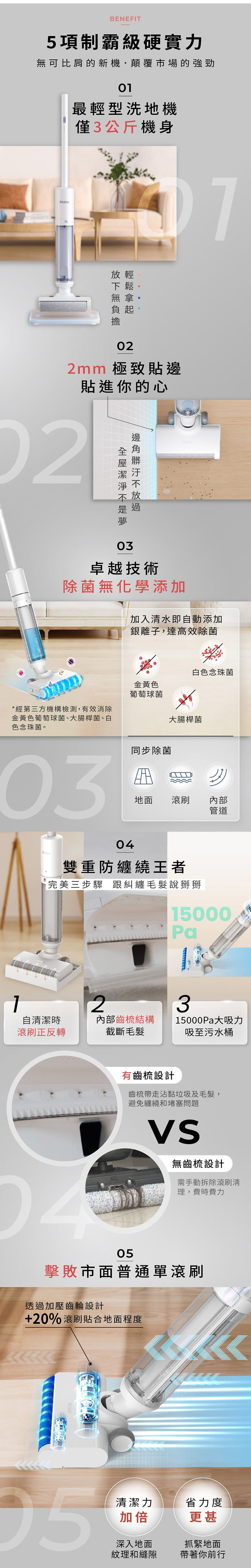 ◆加壓齒輪設計+20%滾刷貼合地面程度,清潔力加倍、省力度更甚。