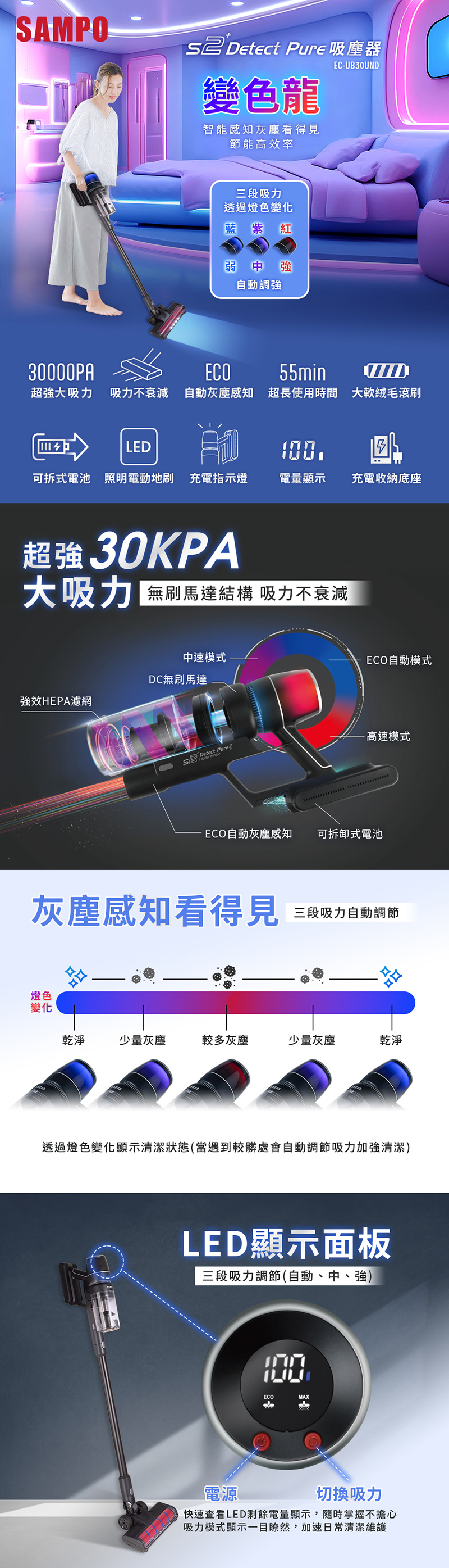 SAMPO 聲寶 變色龍S2 Detect Pure吸塵器 EC-UB30UND