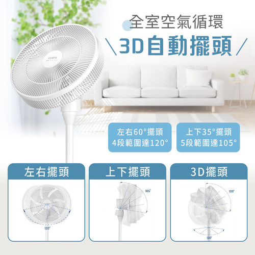 - 3D自動擺頭,全室空氣循環