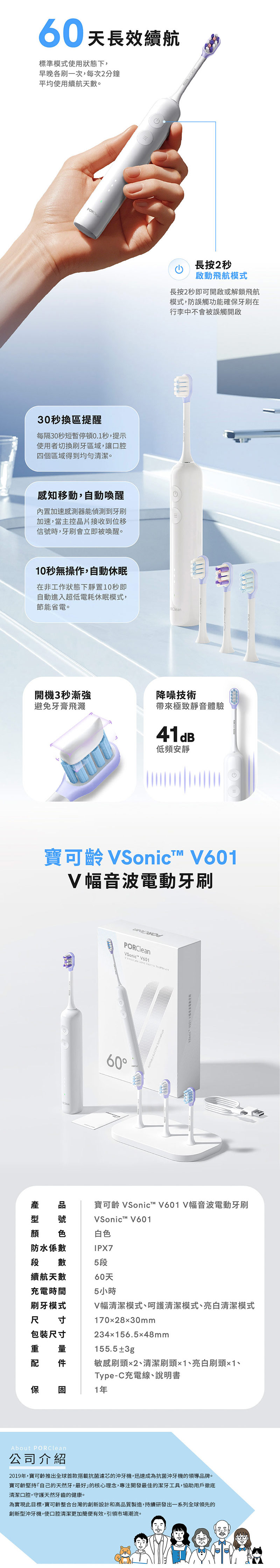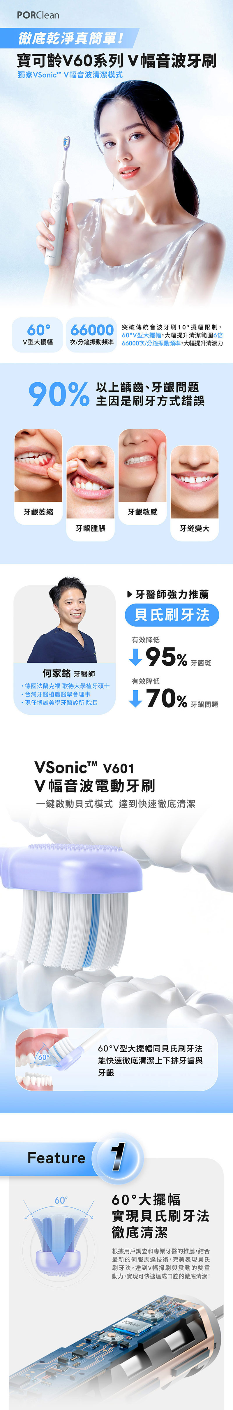 PORClean 寶可齡 VSonic™ V幅音波電動牙刷 V601