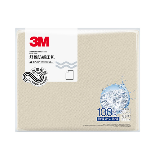 3M 新一代純棉防蹣床包_雙人加大_奶油米_7100326152