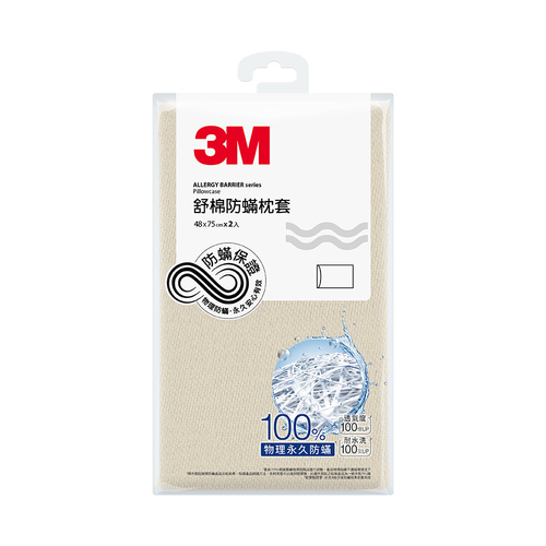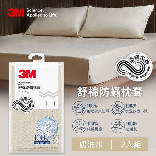 3M 新一代純棉防蹣枕套2入組_奶油米_7100326574