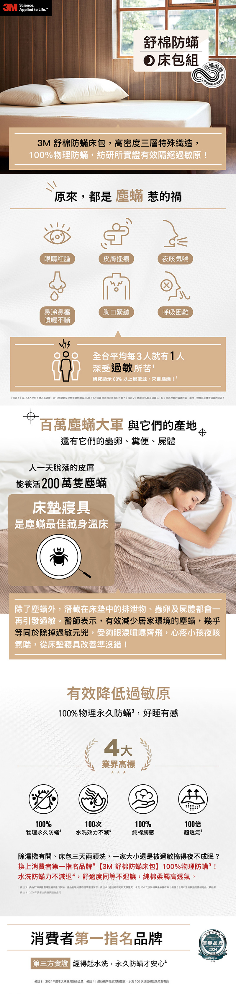 ◆耐水洗100次以上,可機烘:經紡研所證實水洗100次防蹣效果仍舊有效。