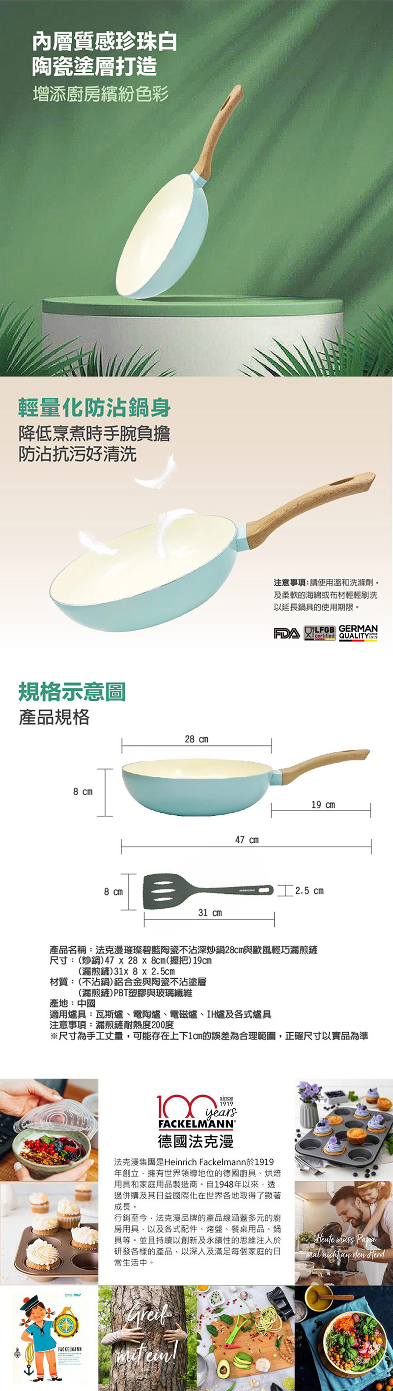 德國Fackelmann 璀璨碧藍陶瓷不沾深炒鍋28cm與炒鏟兩件組(適用電磁爐)_5550781