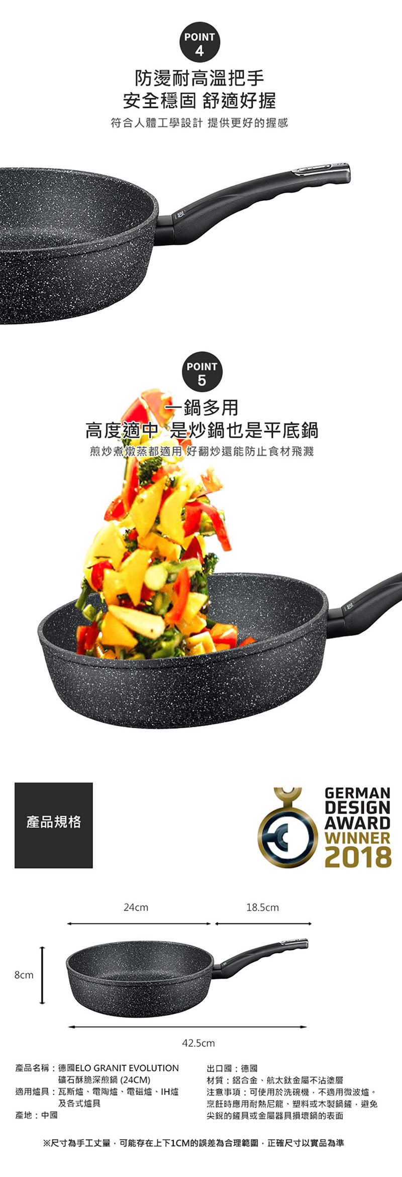 德國ELO Granit Evolution 礦石酥脆24CM不沾深煎鍋(適用電磁爐)_61204