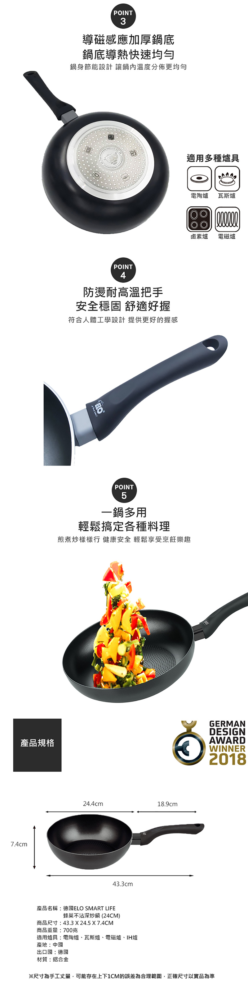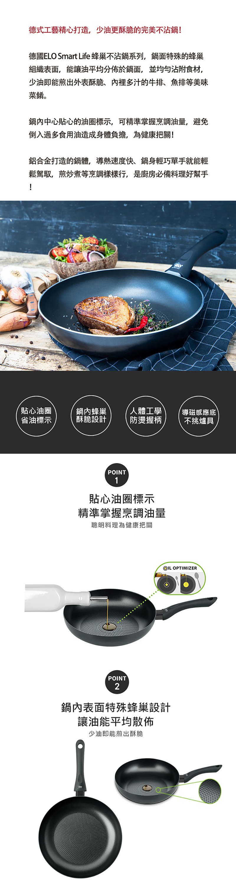 德國ELO Smart Life 24CM蜂巢不沾深炒鍋(適用電磁爐)_43624