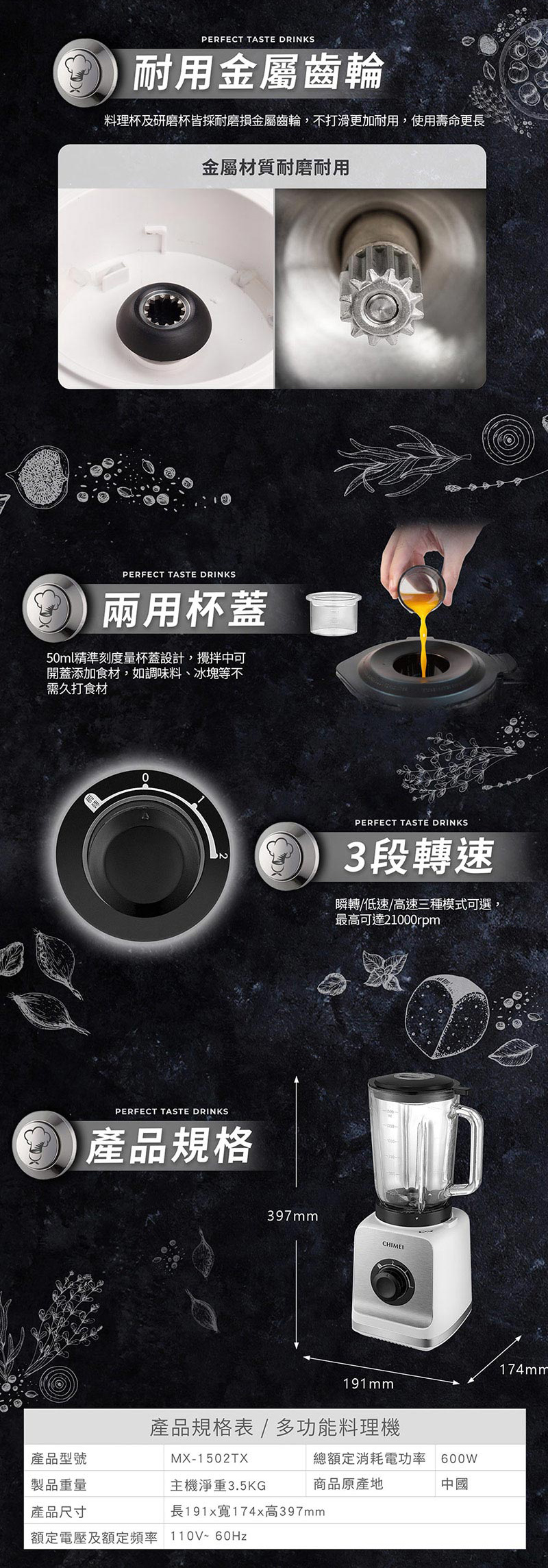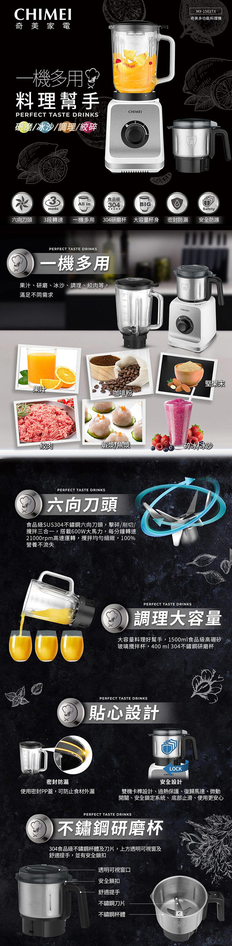 CHIMEI奇美 多功能料理機(攪拌+研磨雙杯組) MX-1502TX