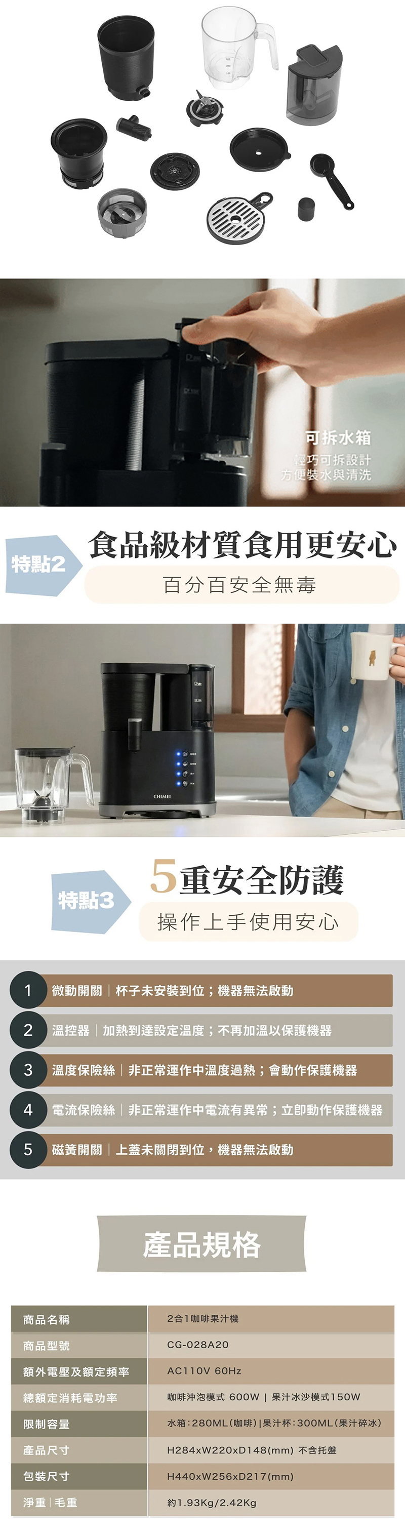 CHIMEI奇美 2合1咖啡果汁機 CG-028A20