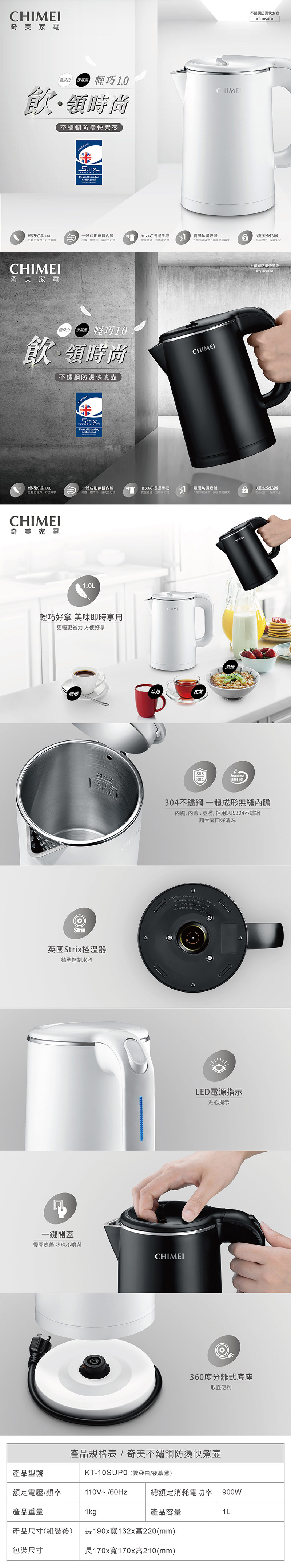 CHIMEI奇美 1L不鏽鋼防燙快煮壺-雲朵白 KT-10SUP0-W
