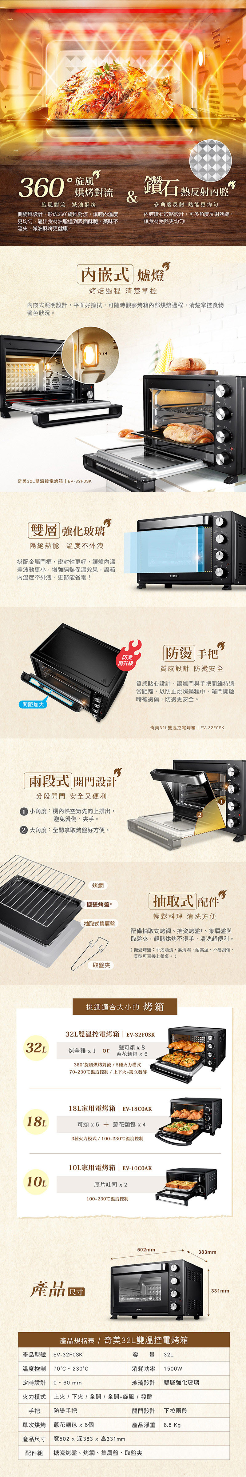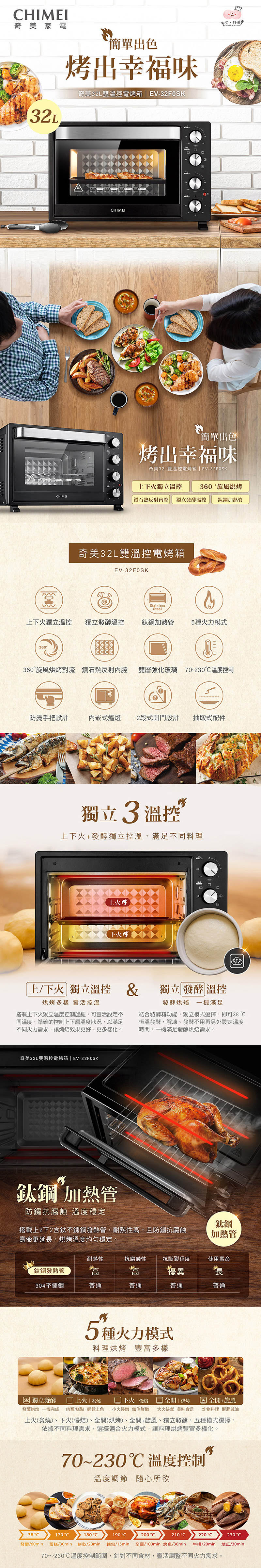 CHIMEI奇美 32L雙溫控360度旋風烘烤獨立發酵電烤箱 EV-32F0SK