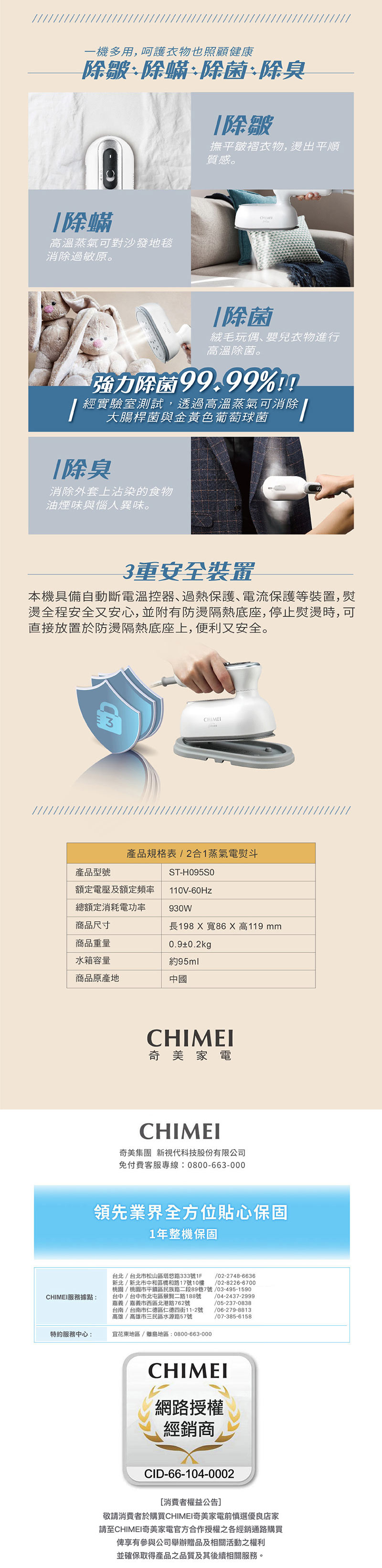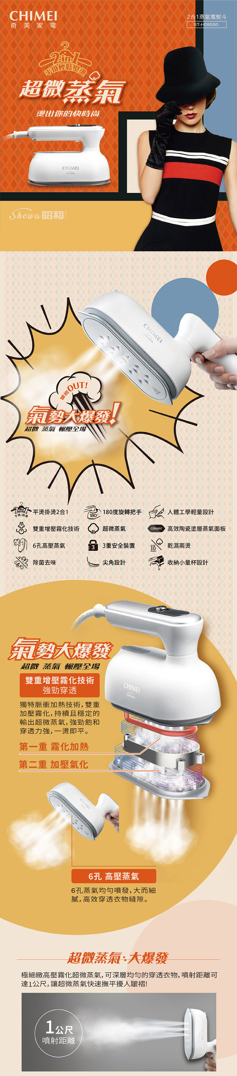 CHIMEI奇美 2合1蒸氣電熨斗 ST-H095S0