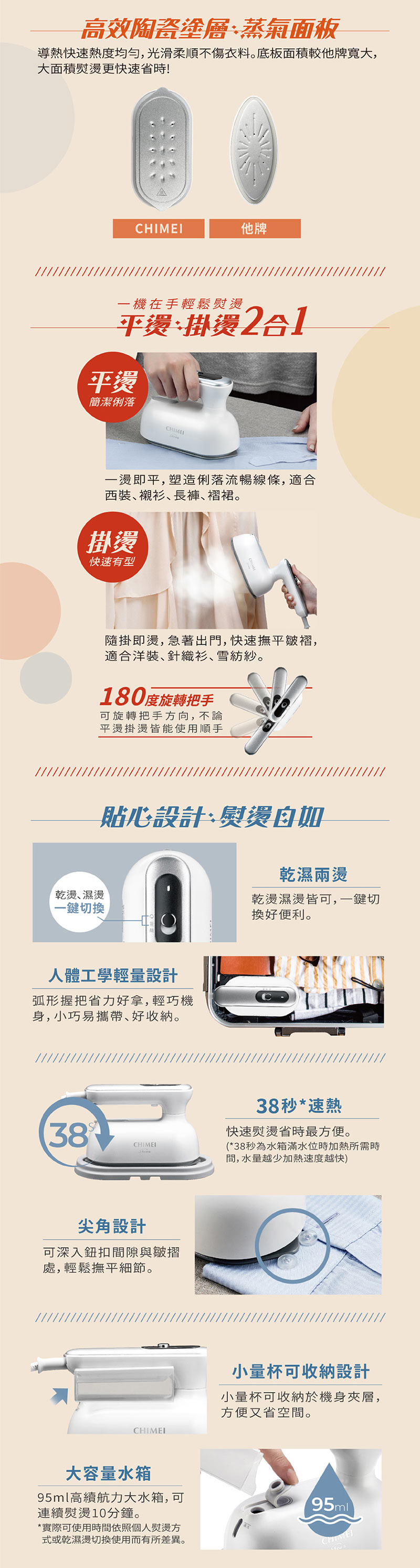 - ◆38秒速熱,快速熨燙免久候
