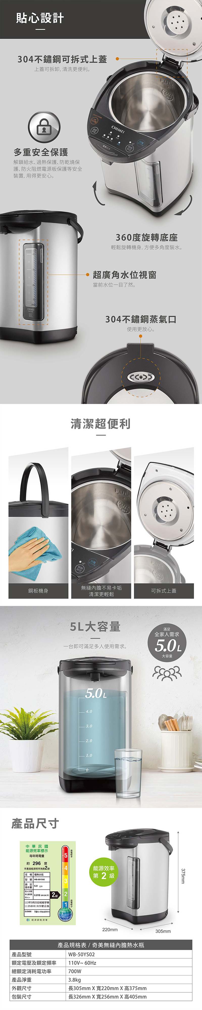 CHIMEI奇美 5L無縫內膽熱水瓶 WB-50YS02