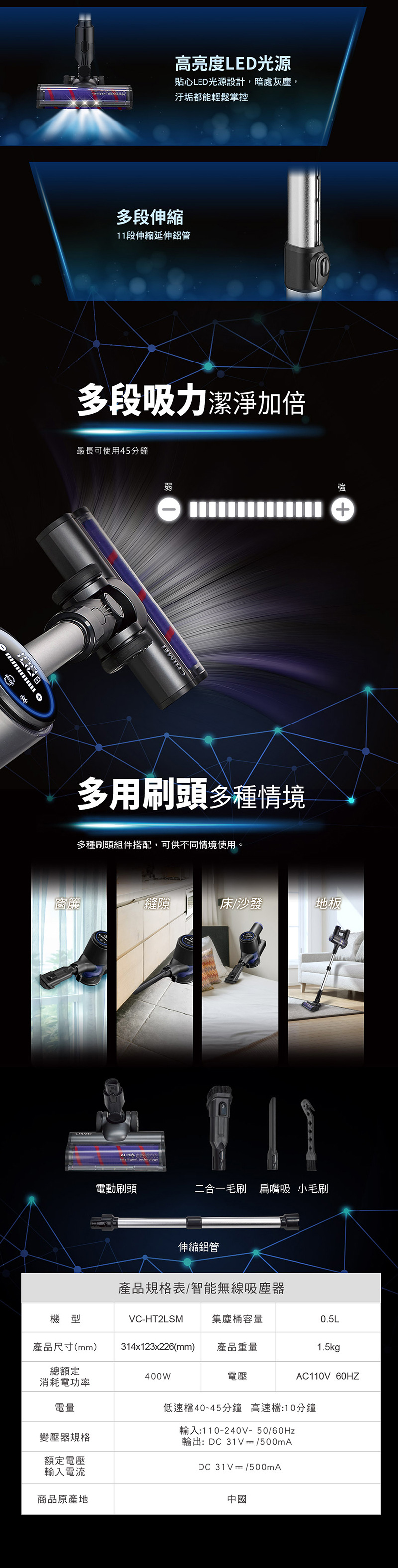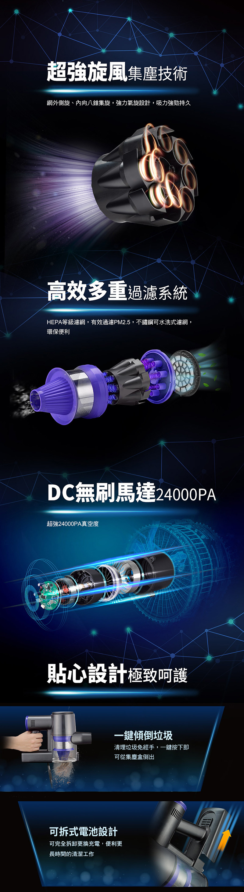 ◆採用DC無刷馬達吸力更強勁,使用壽命更長。