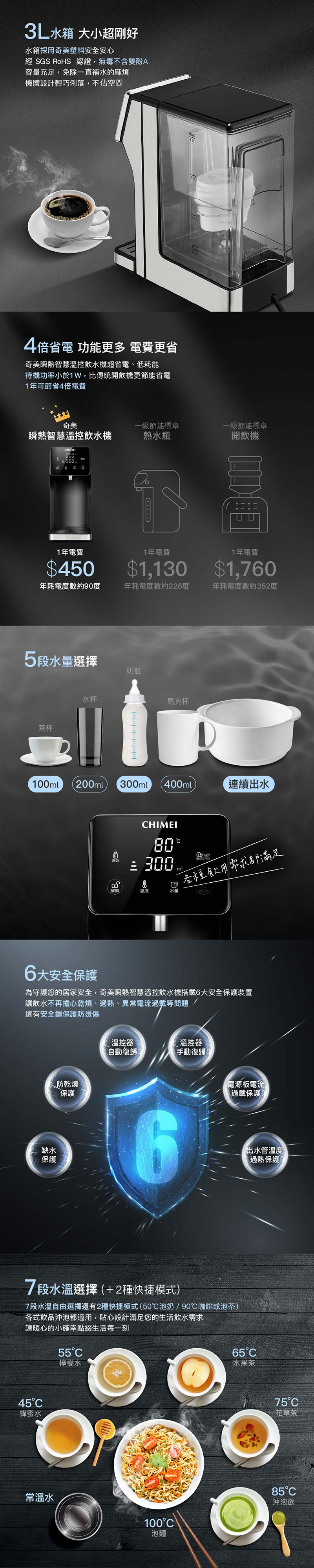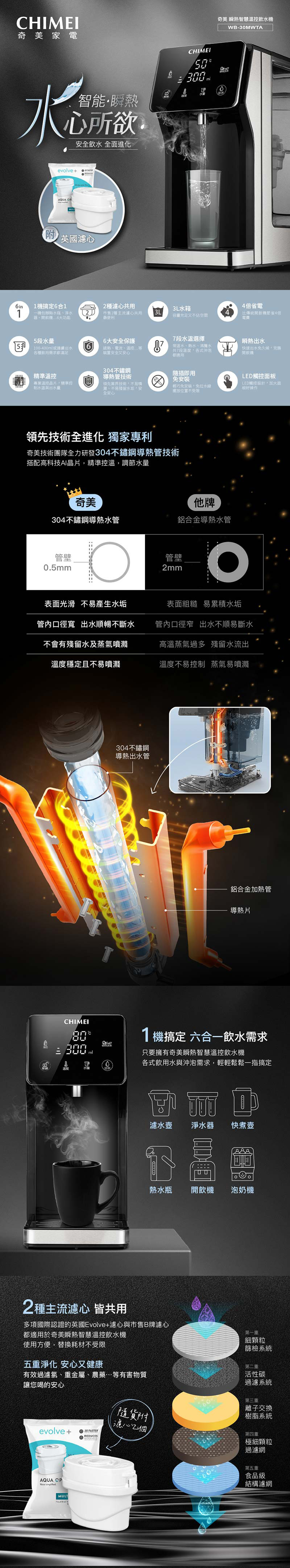 ◆搞定6合1飲水需求,取代濾水壺+淨水器+快煮壺+熱水瓶+開飲機+泡奶機。