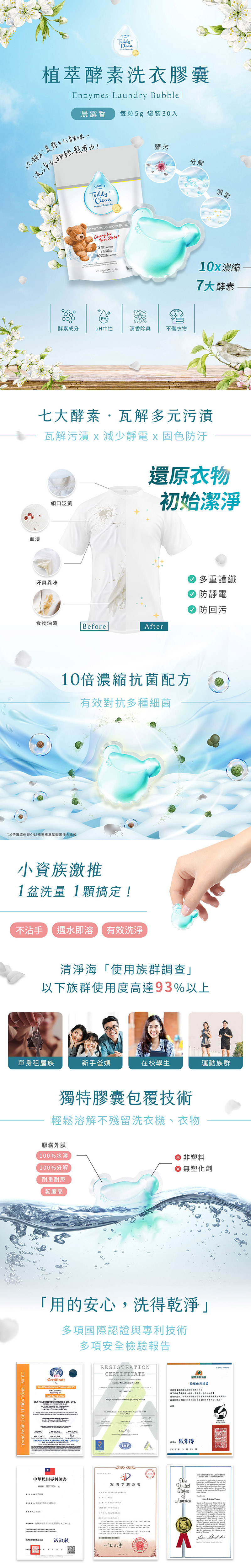 清淨海 Teddy Clean系列植萃酵素洗衣膠囊-晨露香 5g*30顆*六包入