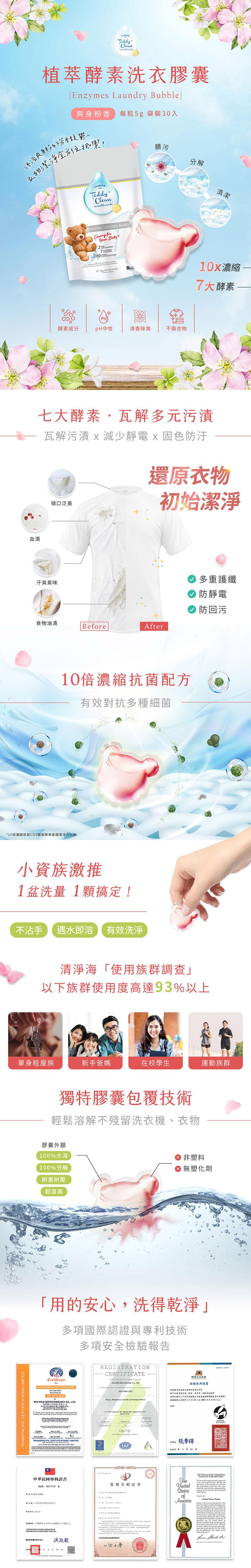 清淨海 Teddy Clean系列植萃酵素洗衣膠囊-爽身粉 5g*30顆*六包入
