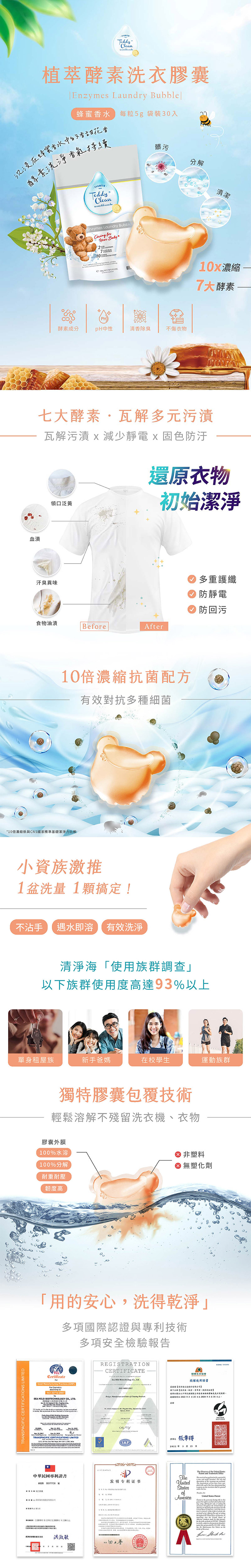 清淨海 Teddy Clean 系列植萃酵素洗衣膠囊-蜂蜜香水5g*30顆*六包入
