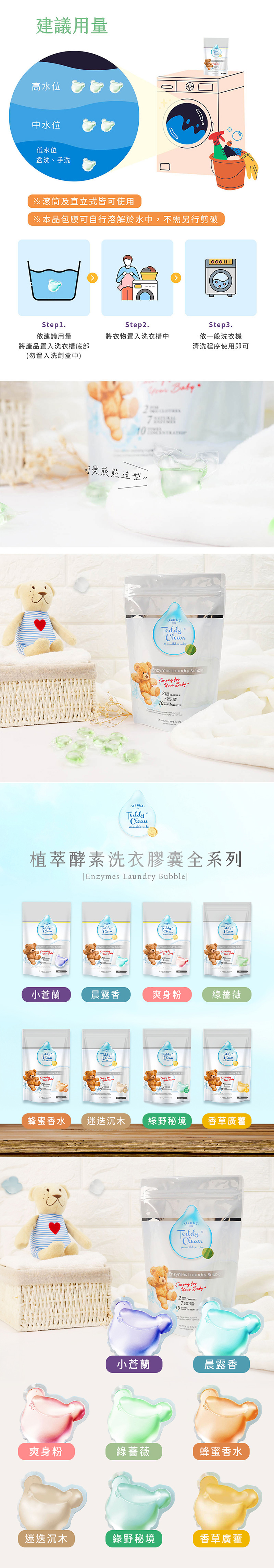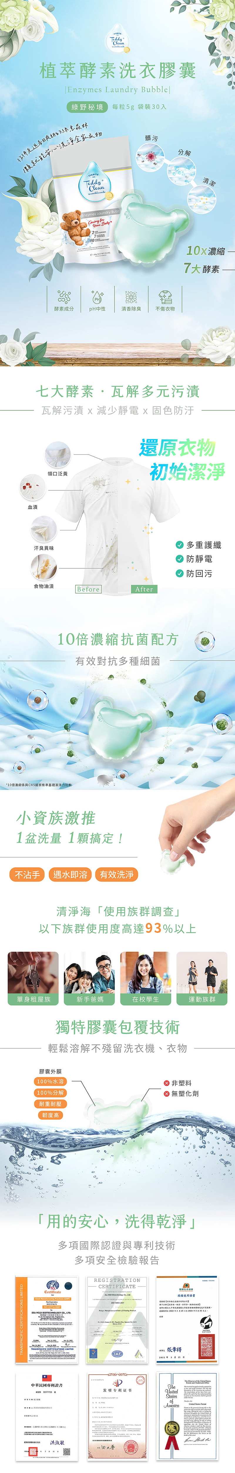 清淨海 Teddy Clean 系列植萃酵素洗衣膠囊-綠野秘境5g*30顆*六包入