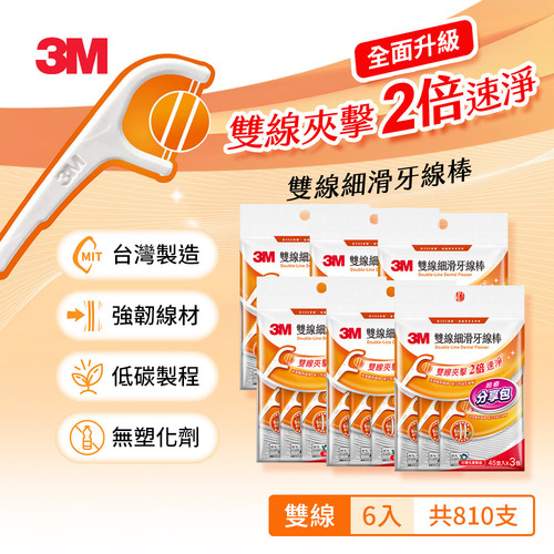 3M 細滑牙線棒-雙線散裝分享包DF03 (45X3)*6包裝