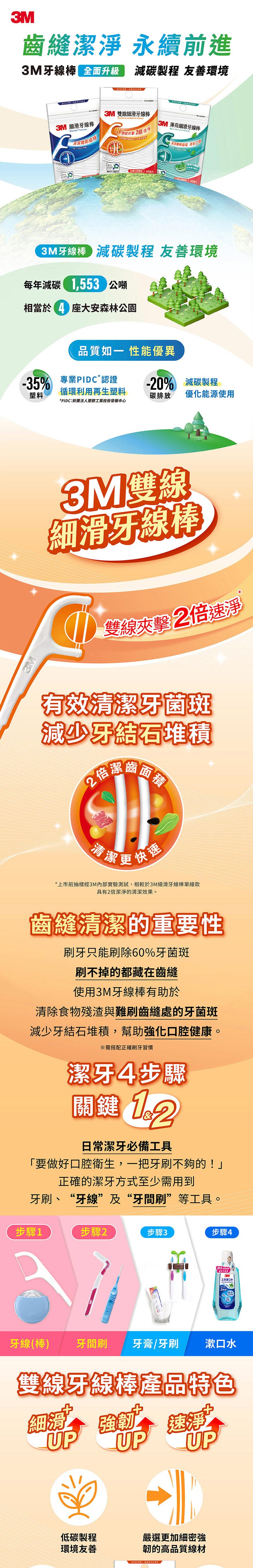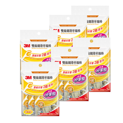 3M 細滑牙線棒-雙線單支分享包DF08 (30X3)*6包裝