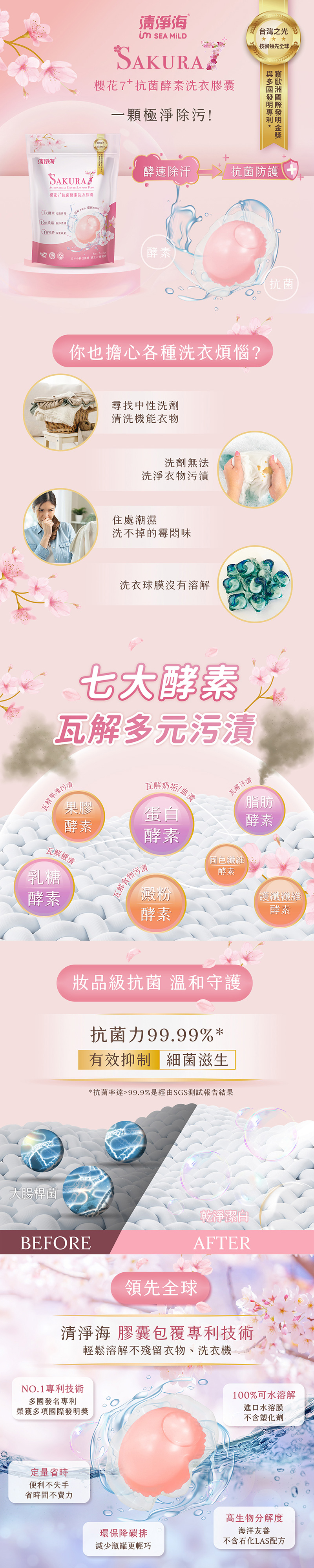 櫻花7+系列抗菌酵素洗衣膠囊8g*24顆(6入組)