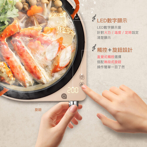◆LED數字清楚顯示火力/溫度/定時設定,旋鈕與觸控搭配調整,操作簡易。