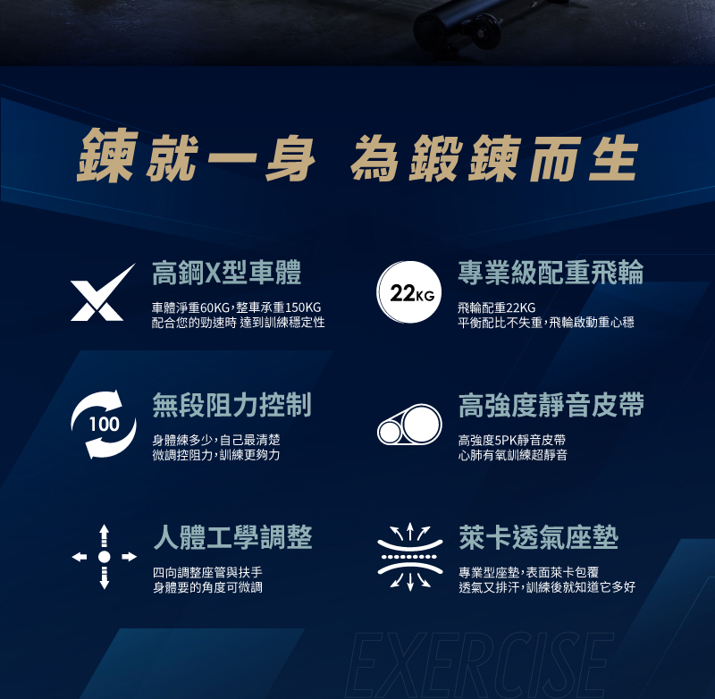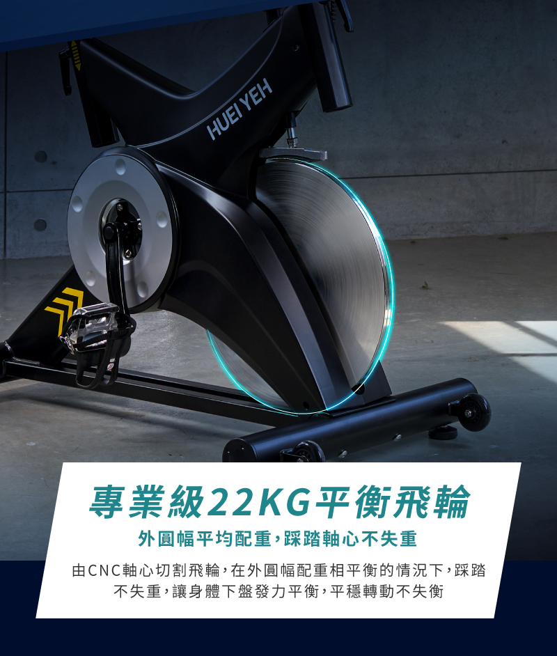 - 22kg飛輪,踩踏不失衡