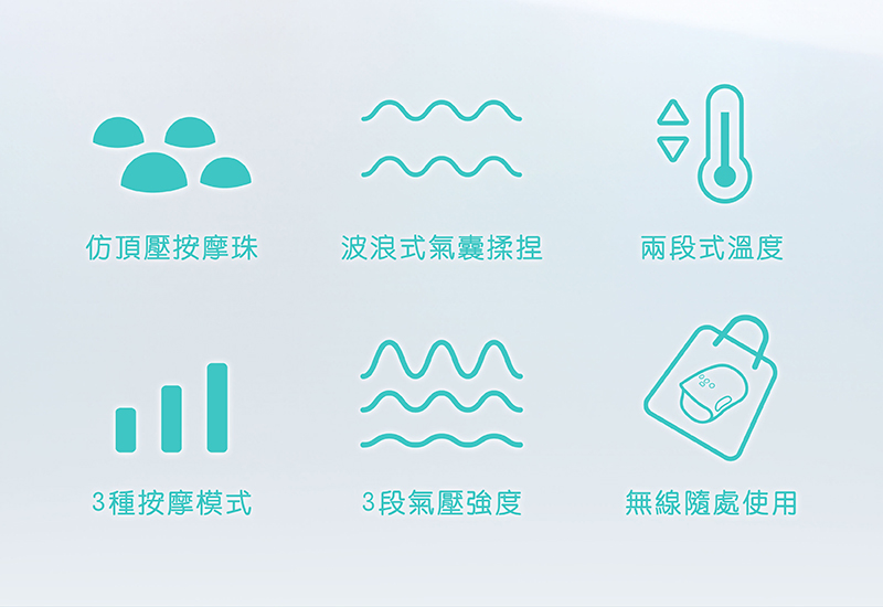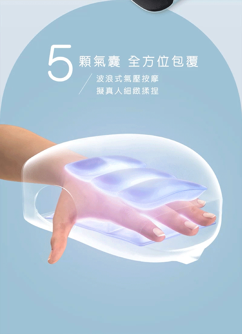 - 5顆氣囊波浪式包覆按摩,擬真人細緻揉捏