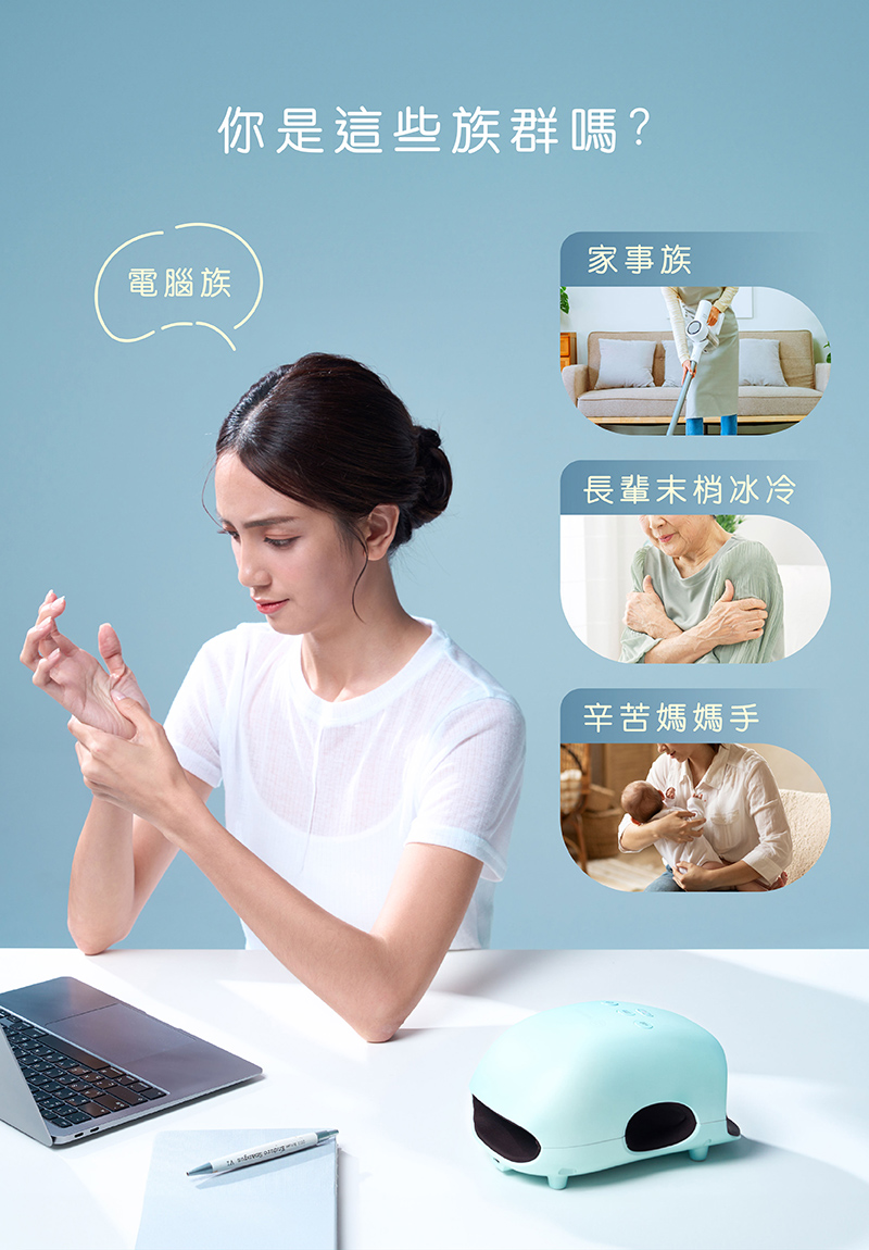 - 手部全方位使用,關節處、手腕也能加強按摩