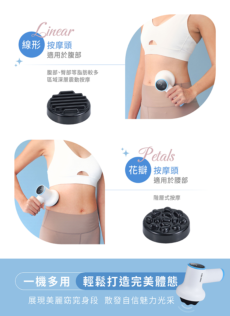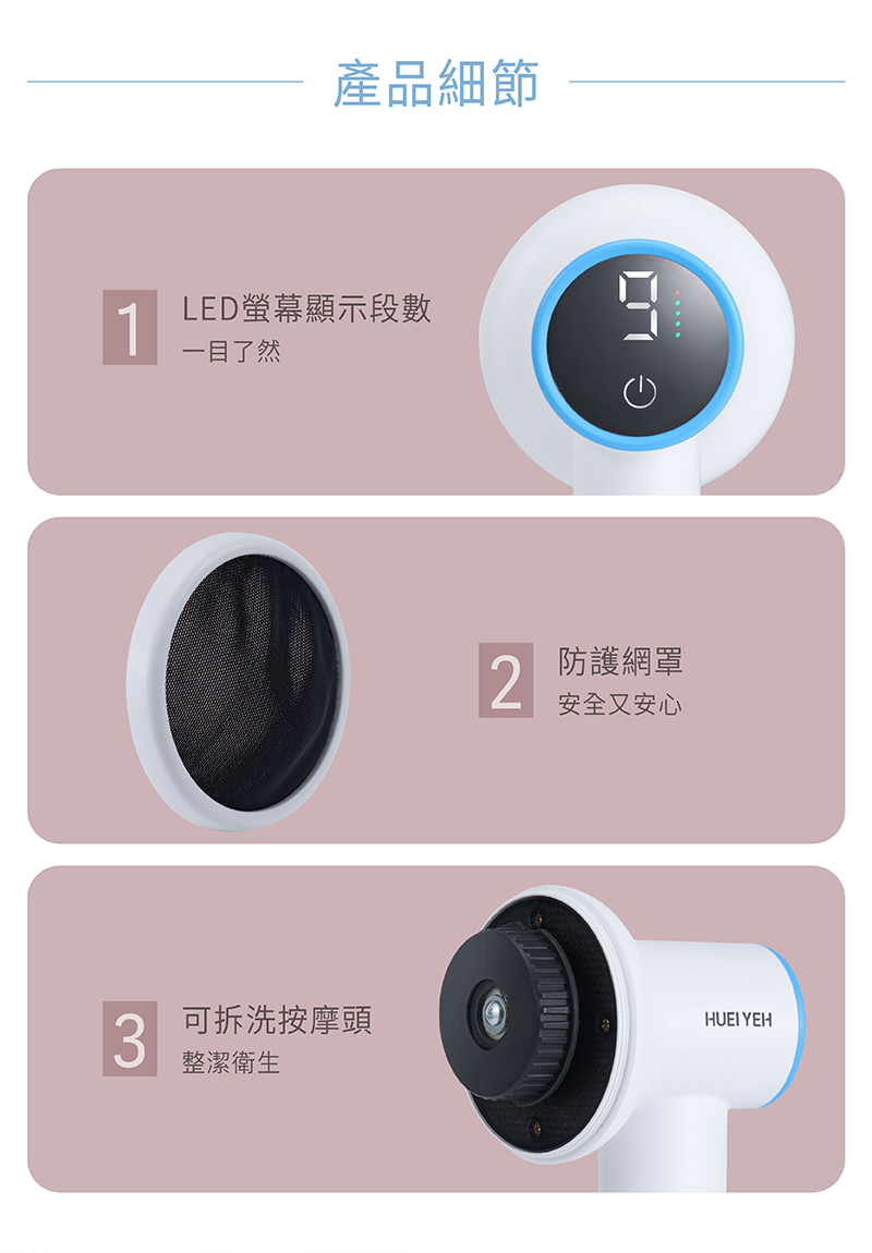 包裝內容按摩儀x1、充電線x1、按摩頭x8、說明書x1