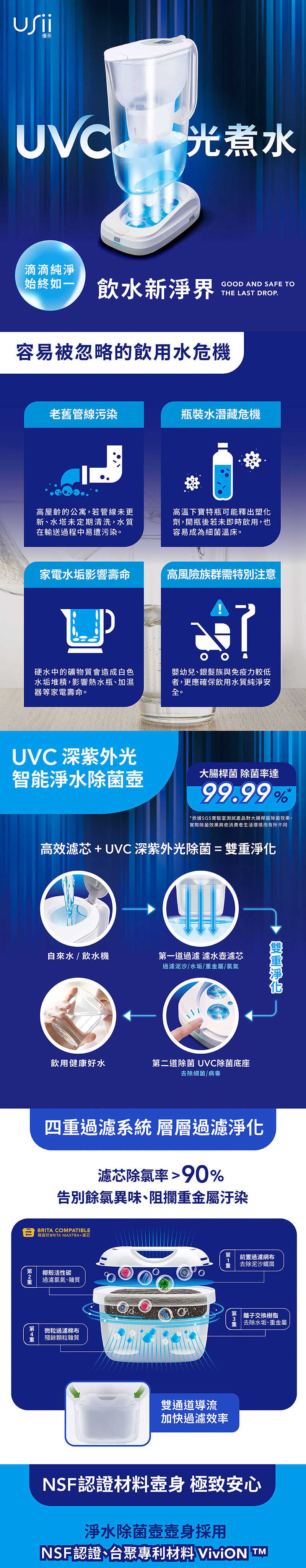 USii UVC智能淨水除菌壺/濾水壺 4.2L
