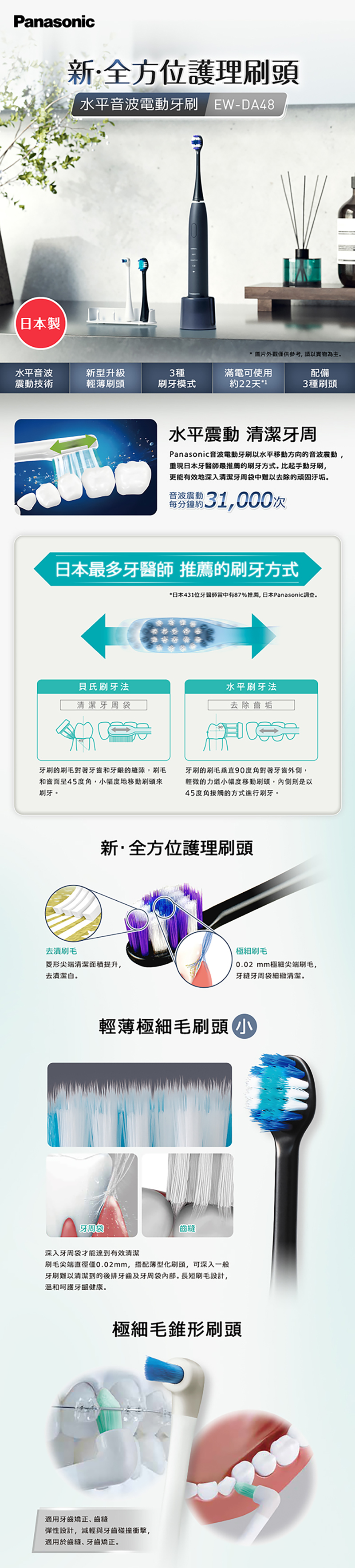 Panasonic 日本製水平音波電動牙刷 EW-DA48-A