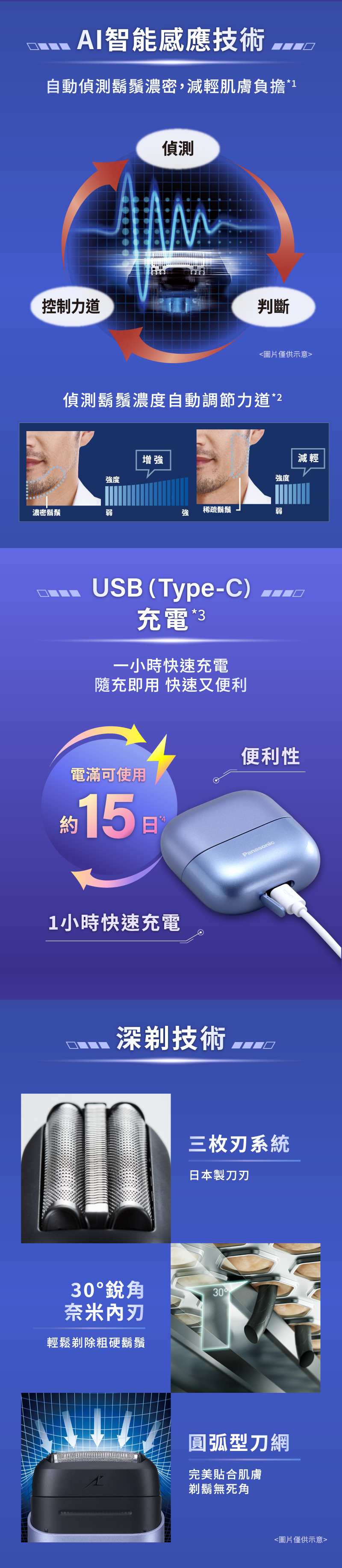 - ◆AI偵測鬍鬚濃密度,自動調節力道
