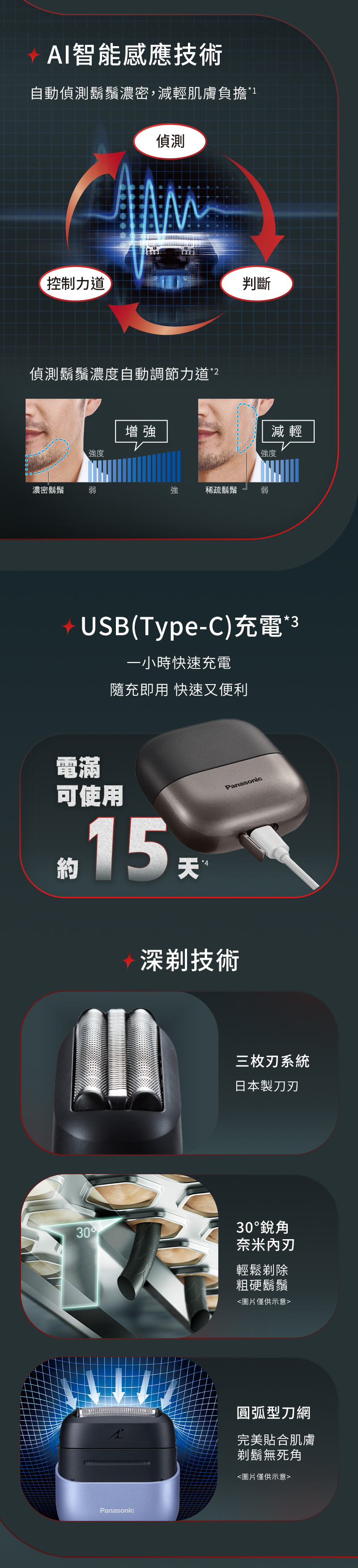 - ◆AI偵測鬍鬚濃密度,自動調節力道
