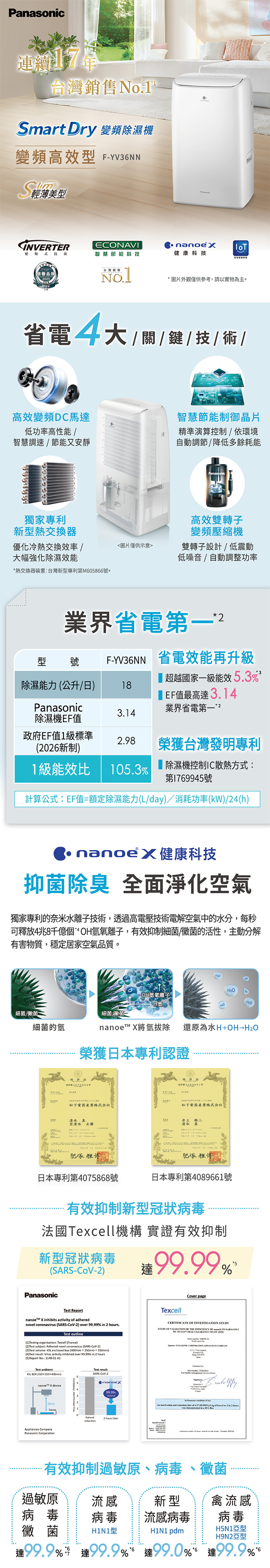 ◆nanoeX健康科技,榮獲日本專利認證,有效抑制細菌/黴菌的活性,穩定居家空氣品質。
