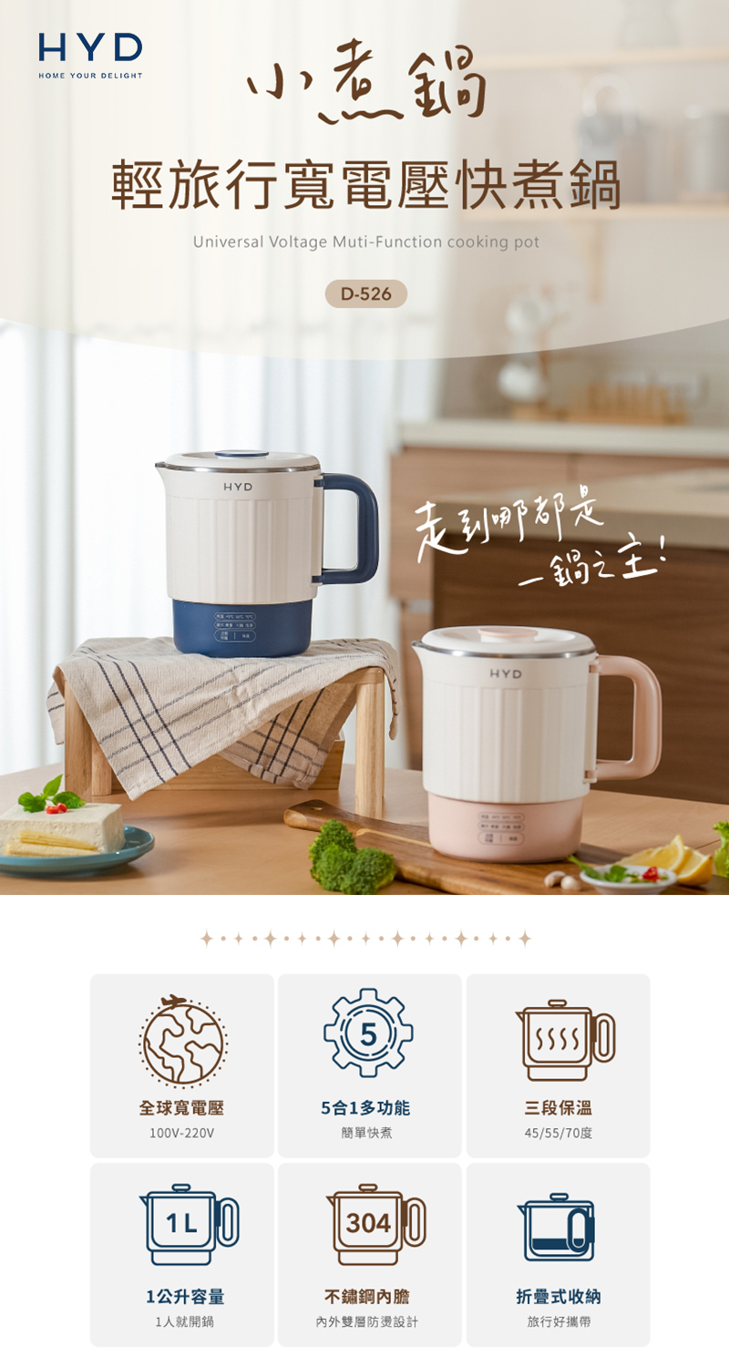 HYD 輕旅行寬電壓料理快煮鍋(小煮鍋)D-526-BU(普魯士藍色)