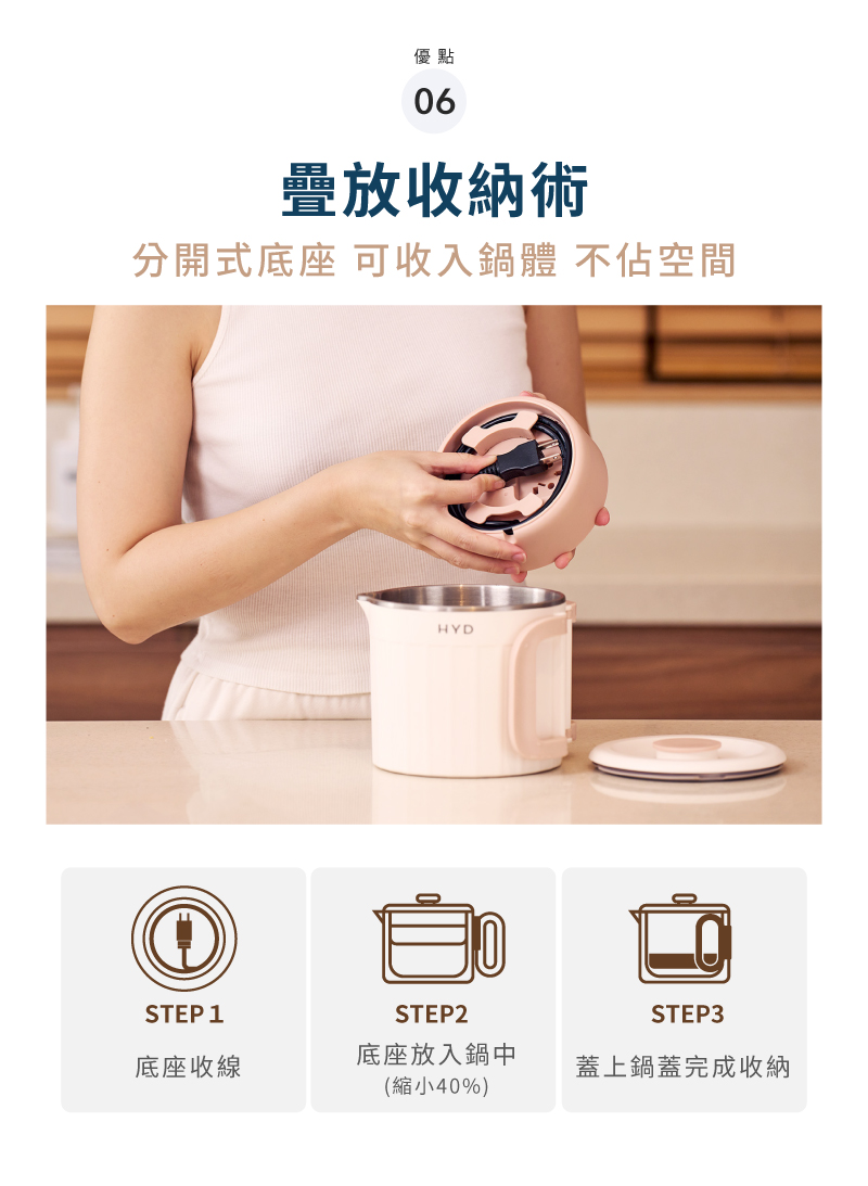 - 折疊式把手以及分開式底座,可收入杯體,不佔空間