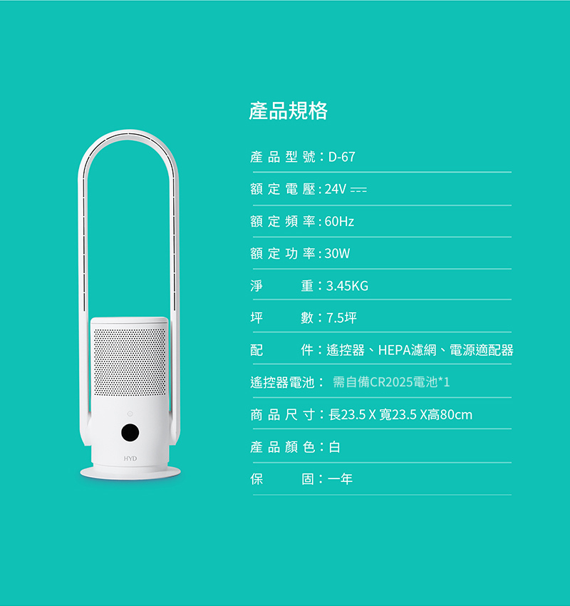 HYD WeAir 360度多效靜音無扇葉涼風扇D-67-WT_EC