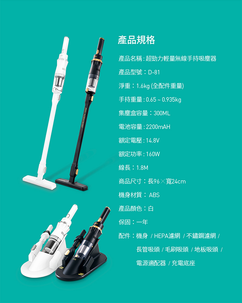 HYD 超勁力輕量無線手持吸塵器 D-81-WT(白)