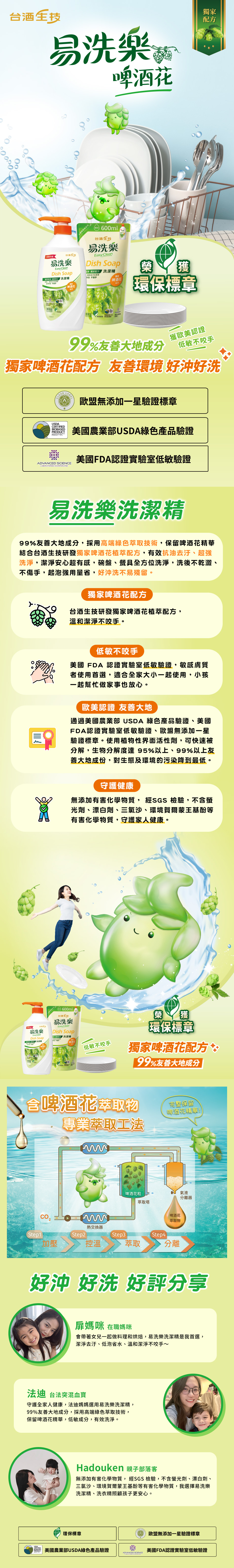 - 採用高端綠色萃取技術,保留啤酒花精華,提升有感洗淨力。