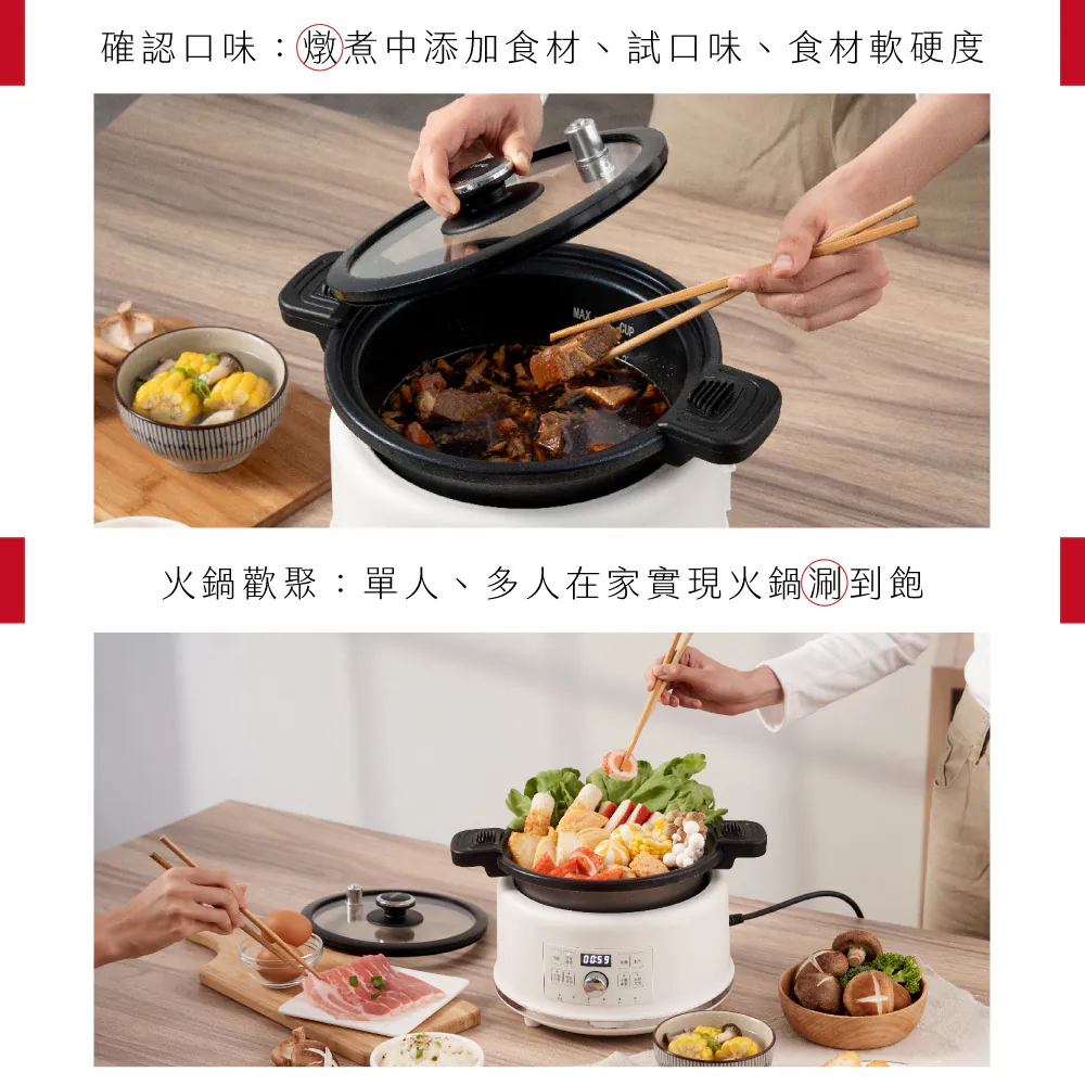 - 隨時開蓋添加食材、簡單拌炒、火鍋團聚皆可行