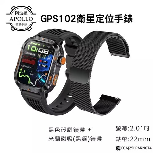 Apollo 阿波羅 GPS102衛星定位智慧手錶-黑色+米蘭磁吸鋼帶 黑色