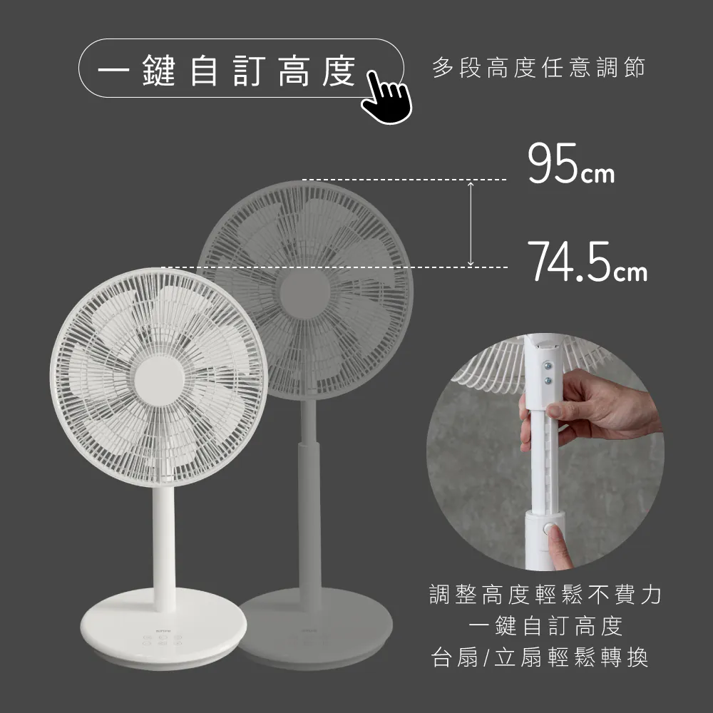 - 台扇、立扇輕鬆轉換,滿足多種使用需求