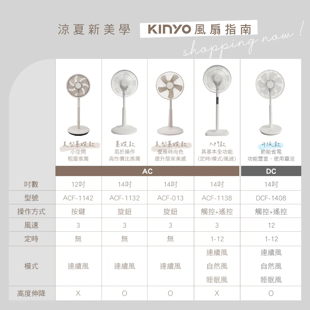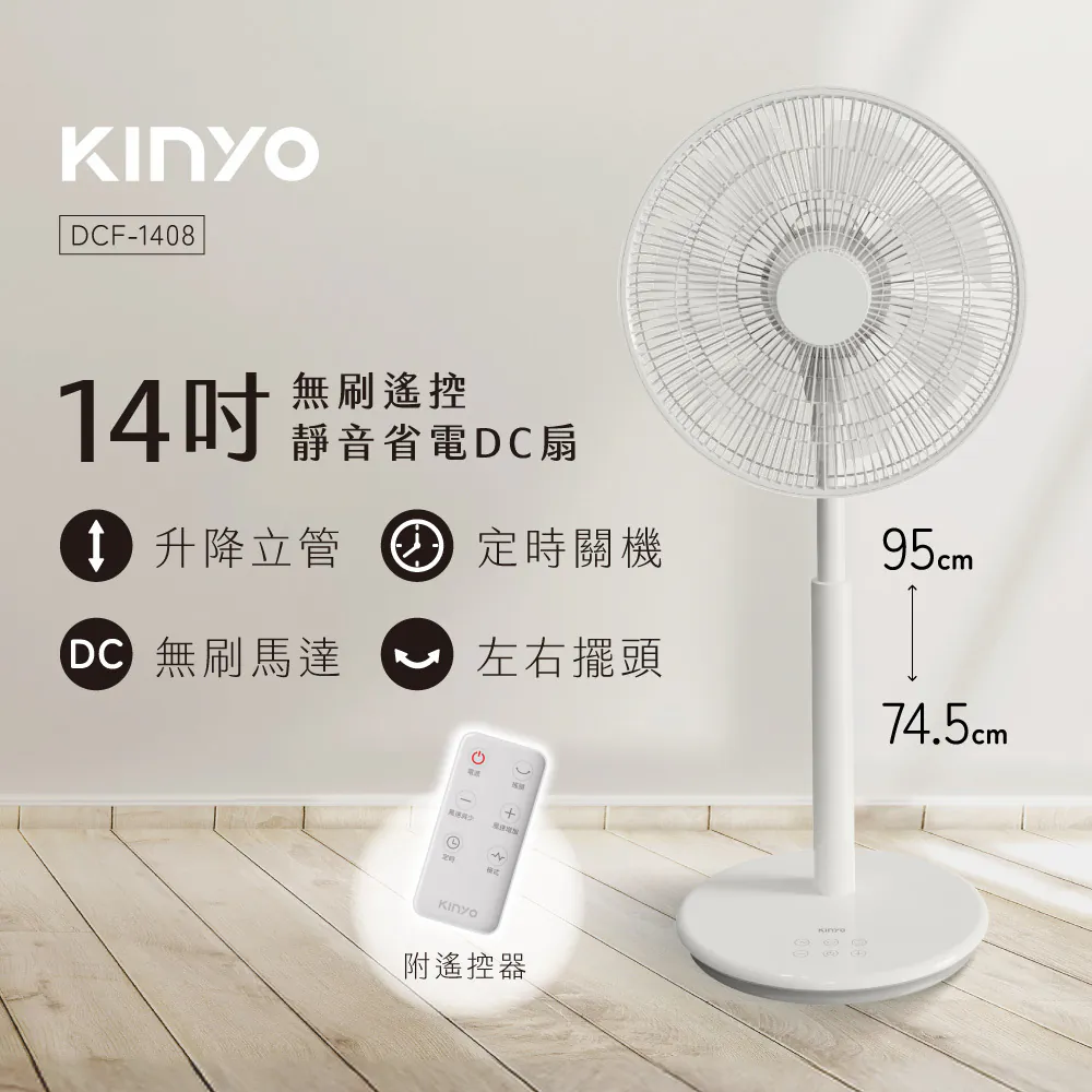 KINYO 直立式DC電風扇14吋 DCF-1408