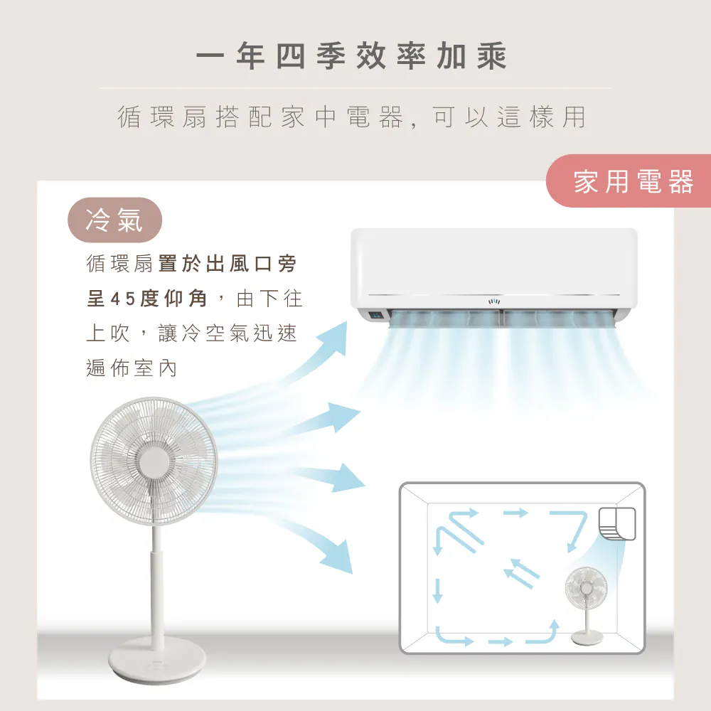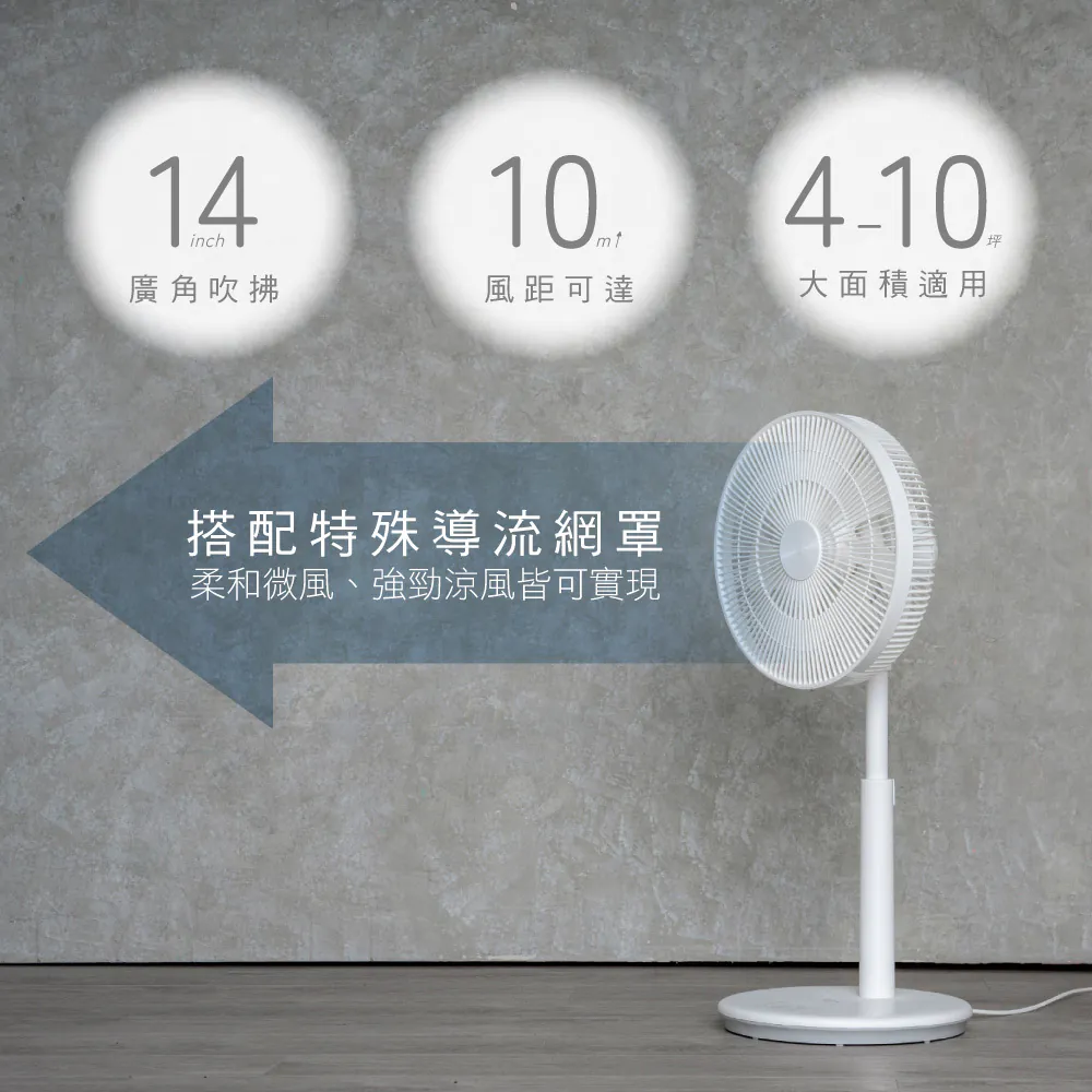 - 14吋大面積廣角吹拂,適用4-10坪空間