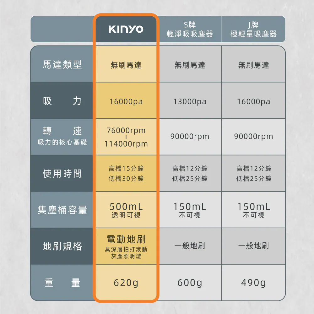 KINYO 無線無刷吸塵器 KVC-036 灰
